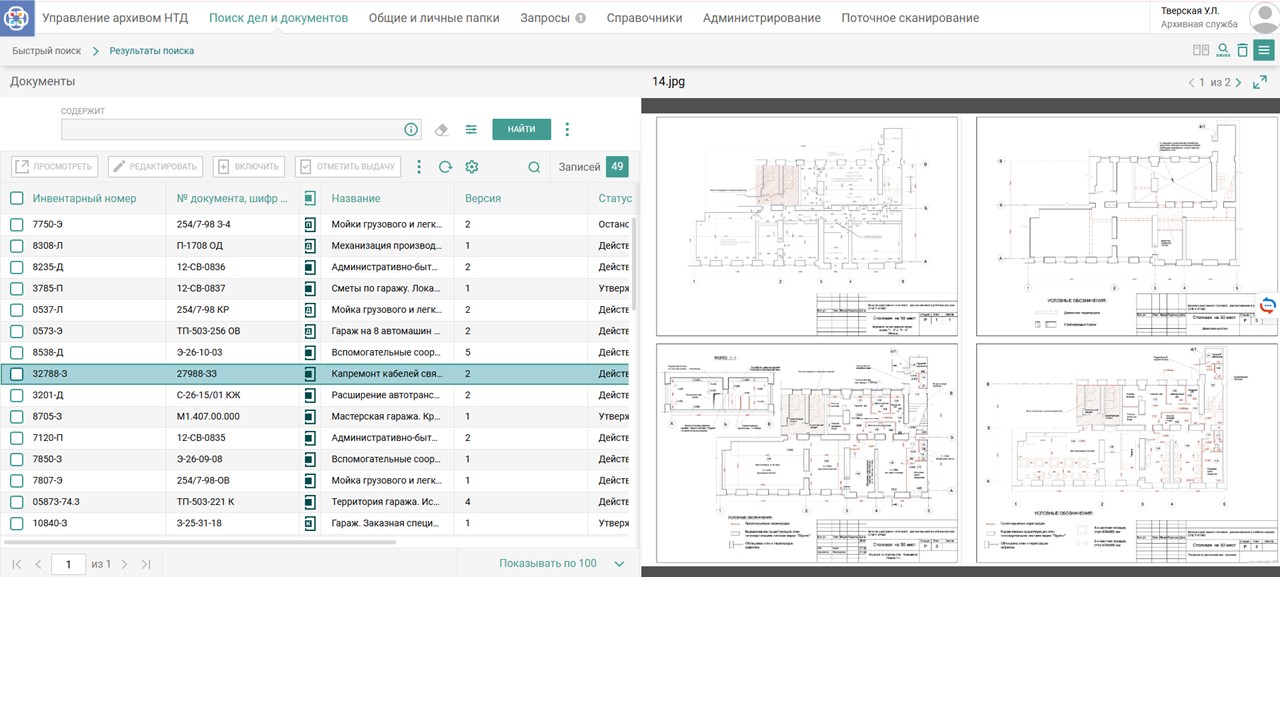 Система поддерживает различные виды документов: научные, конструкторские, проектные и другие настраиваемые типы НТД. Это позволяет вести учет всех документов в одном месте, что упрощает управление архивом.