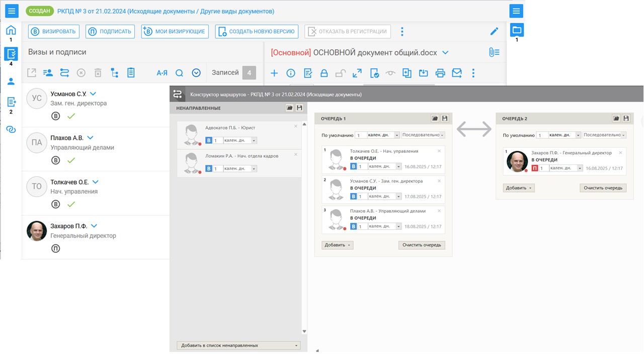 Система «ТИТУЛ» обеспечивает всё необходимое для реализации параллельных, последовательных и смешанных этапов согласования и совместной работы с проектами документов. Настройка маршрутов возможна в наглядном графическом виде с применением шаблонов маршрутов и их отдельных элементов.