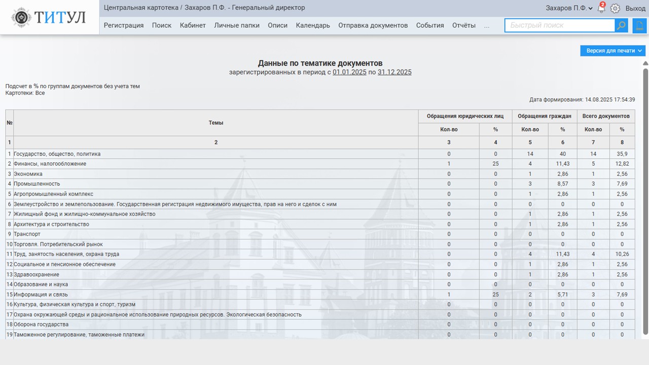 - сведения о документообороте по корреспондентам и гражданам;