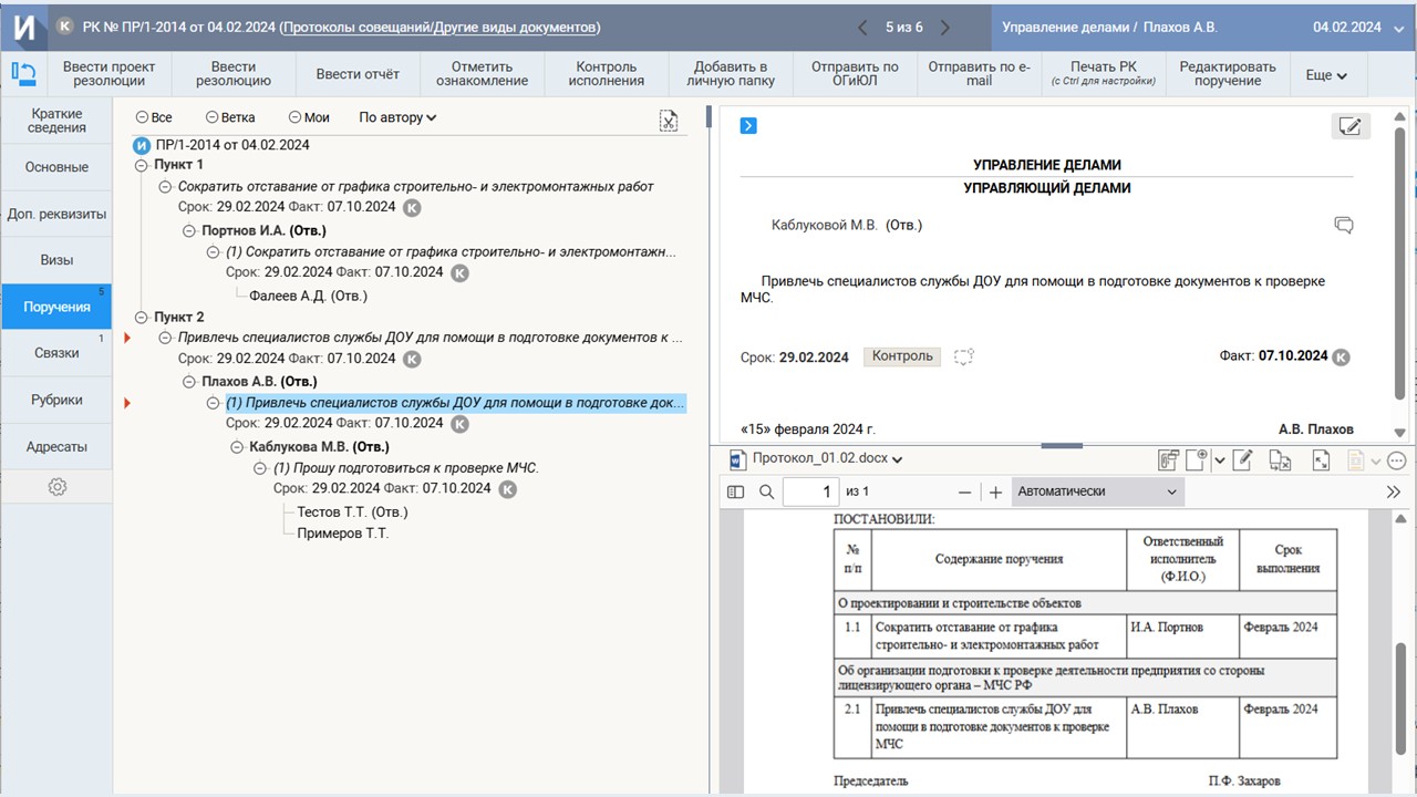 Контроль исполнения решений — ключевая функция системы, которая автоматизирует процесс совещаний в едином контуре документооборота. По итогам совещания формируются и направляются на исполнение соответствующие поручения. Актуальный статус исполнения поручений может отображаться как в виде табличной сводки, так и с помощью динамически обновляемых диаграмм, что позволяет пользователям легко отслеживать выполнение задач.
