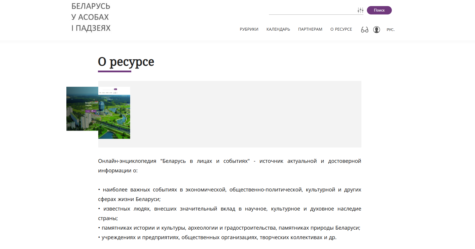 Формировать централизованный информационный ресурс с фактографической информацией о выдающихся личностях, внесших значительный вклад в научное, культурное и духовное наследие Беларуси.